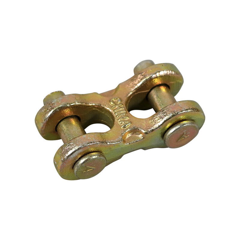 Multiprens 1/4″ – 5/16″” Grade 70 Double Clevis Link is a heavy-duty connector designed for repairing or joining two lengths of either 1/4″ G70 or two lengths of 5/16″ Grade 70 transport chain with ease and reliability. Crafted from forged, heat-treated steel, this component features a zinc-plated finish for superior corrosion resistance. The dual-clevis design with removable pins allows for quick installation and secure chain-to-chain connections without compromising strength.
